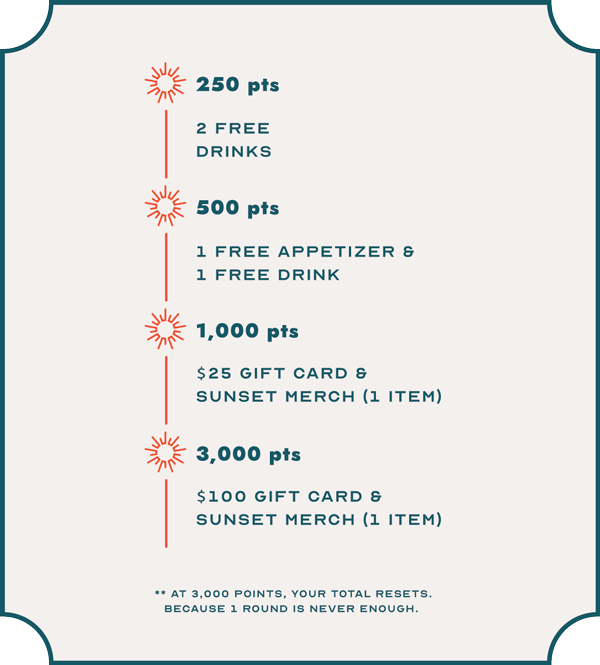 At Sunset, there’s no agenda. Dock the boat, park the car and come on in for a cold beer, great grub and a sunset that’ll knock your socks off.